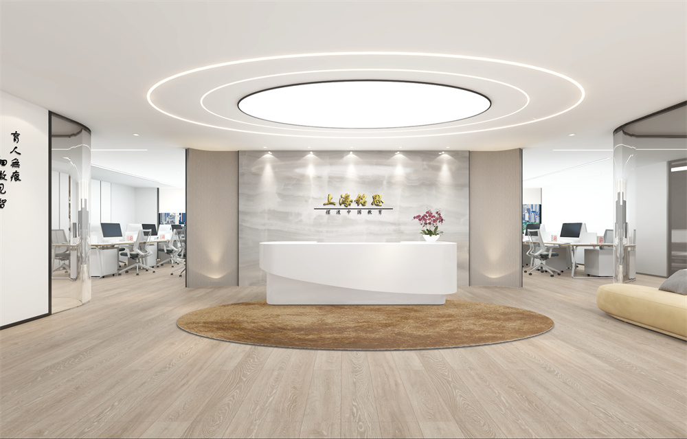 前廳作為整個辦公室的門面工程,一般是需要較為明亮的光線,前廳背景墻設計時常會把公司LOGO及企業品牌文化相結合,根據這兩個特點,辦公室前廳設計時采用主燈滿足基礎照明之外,還可以利用多射燈作為輔助光源,對公司LOGO及品牌文化凸出展示。