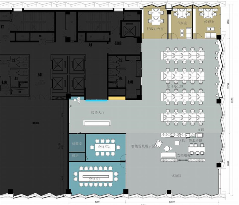 對(duì)隱私要求不高的部門(mén)盡量敞開(kāi)辦公,一定需要獨(dú)立辦公空間的也最好使用玻璃隔斷,這樣通透性更強(qiáng)些,空間的劃分外觀更合理,同時(shí)保持空間的完整性。