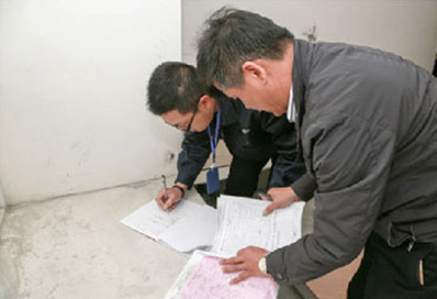 持有《上海裝修裝飾質(zhì)量檢驗(yàn)師》證書(shū)的質(zhì)檢人員攜全套檢驗(yàn)設(shè)備進(jìn)行專項(xiàng)檢查,合格后填寫(xiě)階段驗(yàn)收?qǐng)?bào)告,并將現(xiàn)場(chǎng)照片及時(shí)上傳至公司系統(tǒng)。
